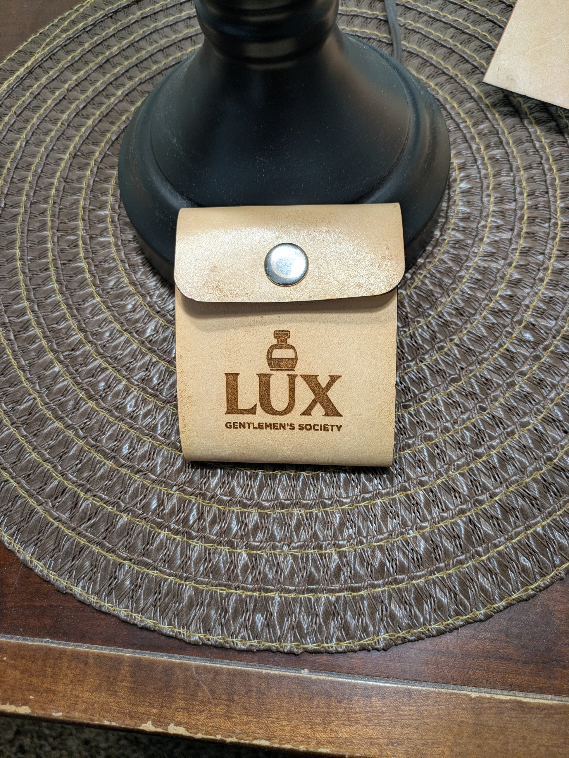 Lux Gentlemen's Society compact leather travel case, holster or carrier to safely transport your travel sprays, decants or samples to work, school or on vacation.