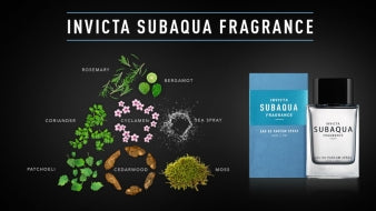 Invicta Subaqua. The warm Mediterranean breeze caresses the senses with energetic notes of bergamot and rosemary. Refreshingly pleasant, a kiss of sea spray and coriander are intertwined with aromatic cedarwood and moss, revealing deep oceanic sensations. Expressing a longing to escape and the freedom to do so, the sea-side scent of an awaiting adventure. (Invicta.com)
