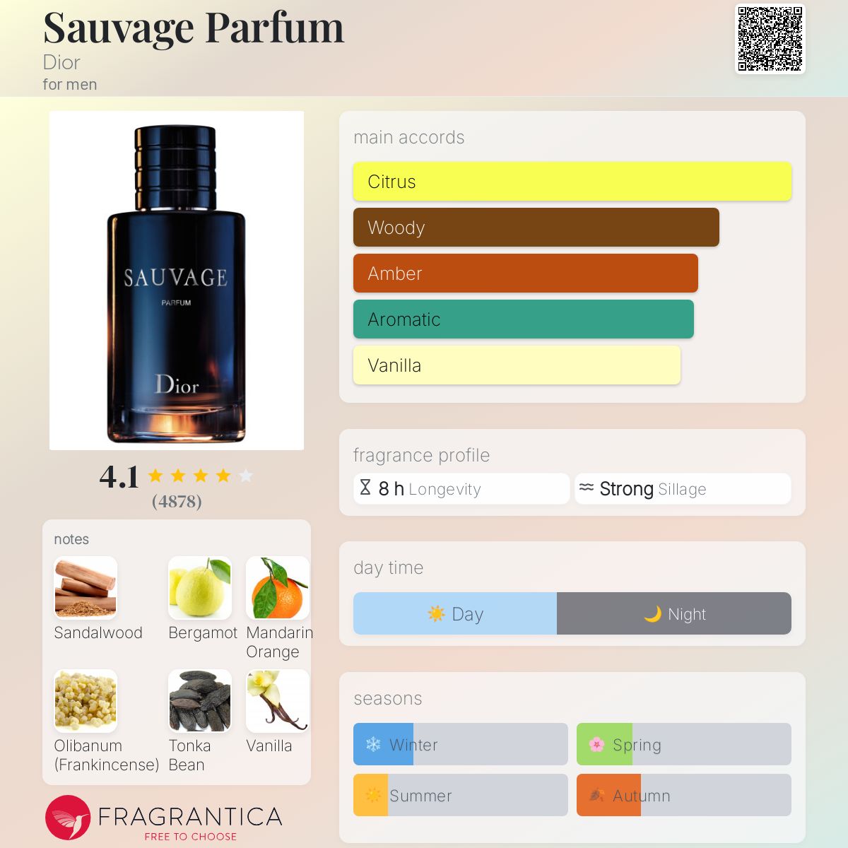 Sauvage Parfum by Dior is a Oriental Fougere fragrance for men. Sauvage Parfum was launched in 2019. The nose behind this fragrance is François Demachy. Top notes are Bergamot, Mandarin Orange and elemi; middle note is Sandalwood; base notes are Olibanum, Tonka Bean and Vanilla. (Fragrantica.com)