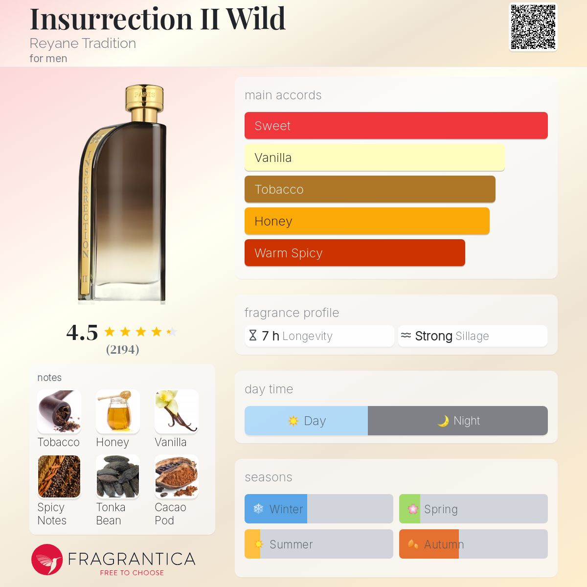 Introduced in 2013 by Reyane Tradition. This is a spice gourmand fragrance that starts with top notes of grapefruit, orange and bergamot overlaid with honey. (Fragrantica.com)